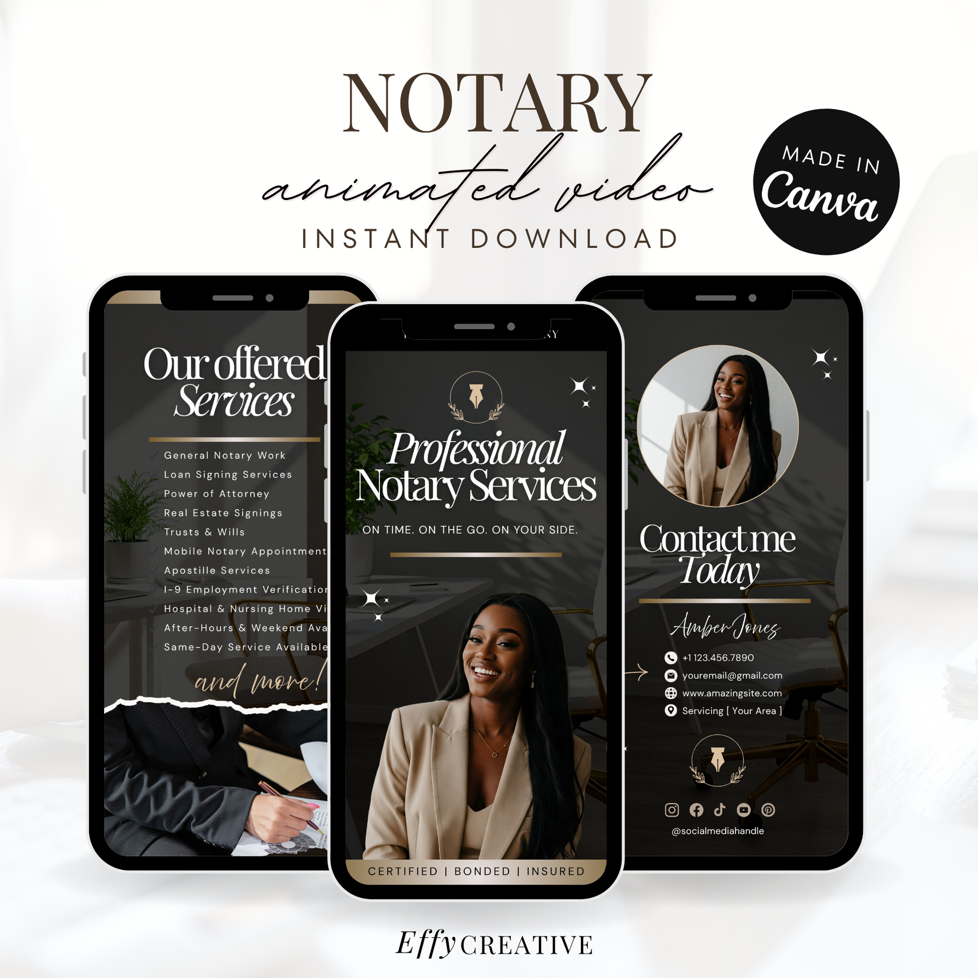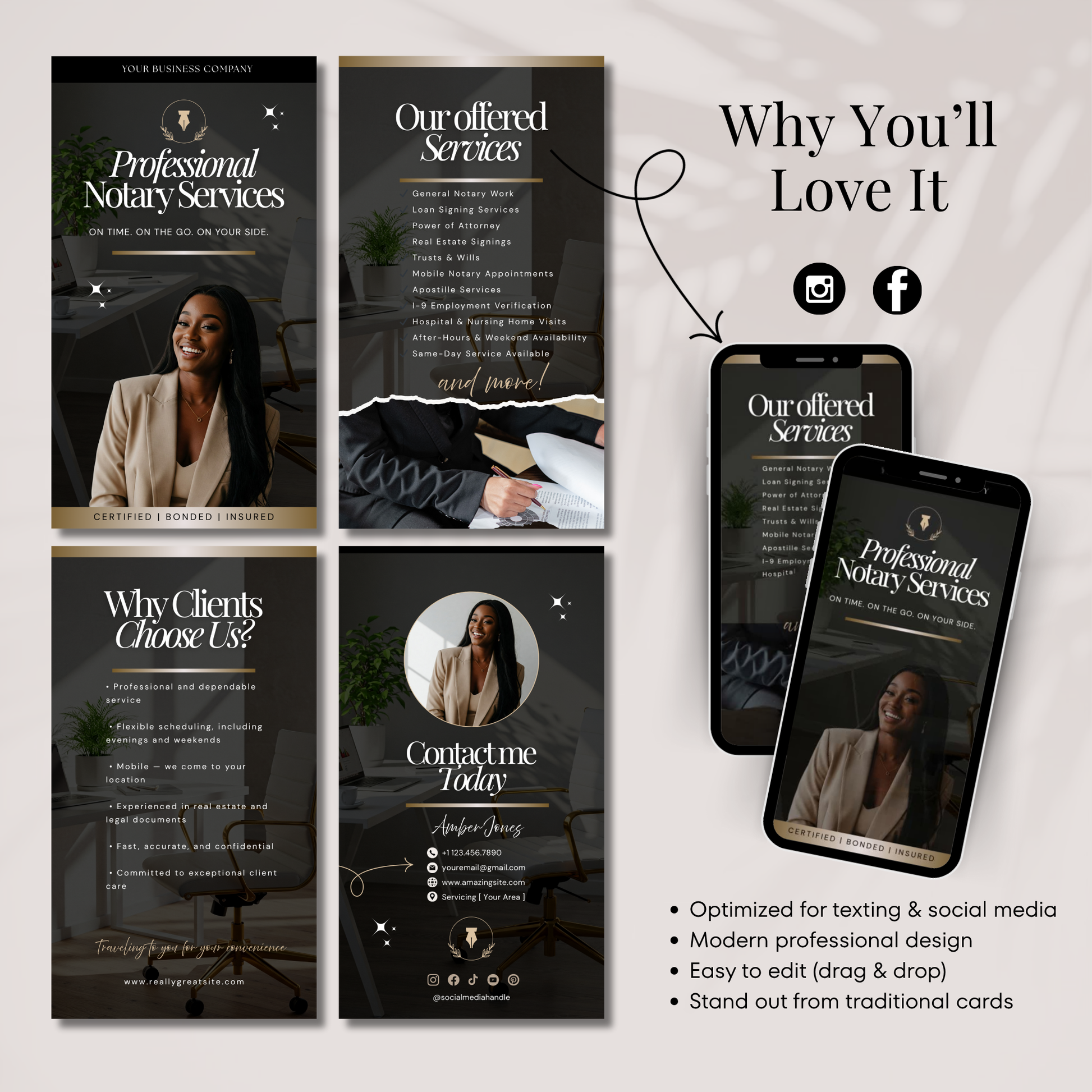 🤍 Level up your notary brand with this scroll-stopping Animated Mobile Flyer! Sized perfectly at 1080x1920, this vertical business card is ideal for texting clients, sharing in DMs, or posting to your social media stories. Fully editable in Canva – no design skills needed!