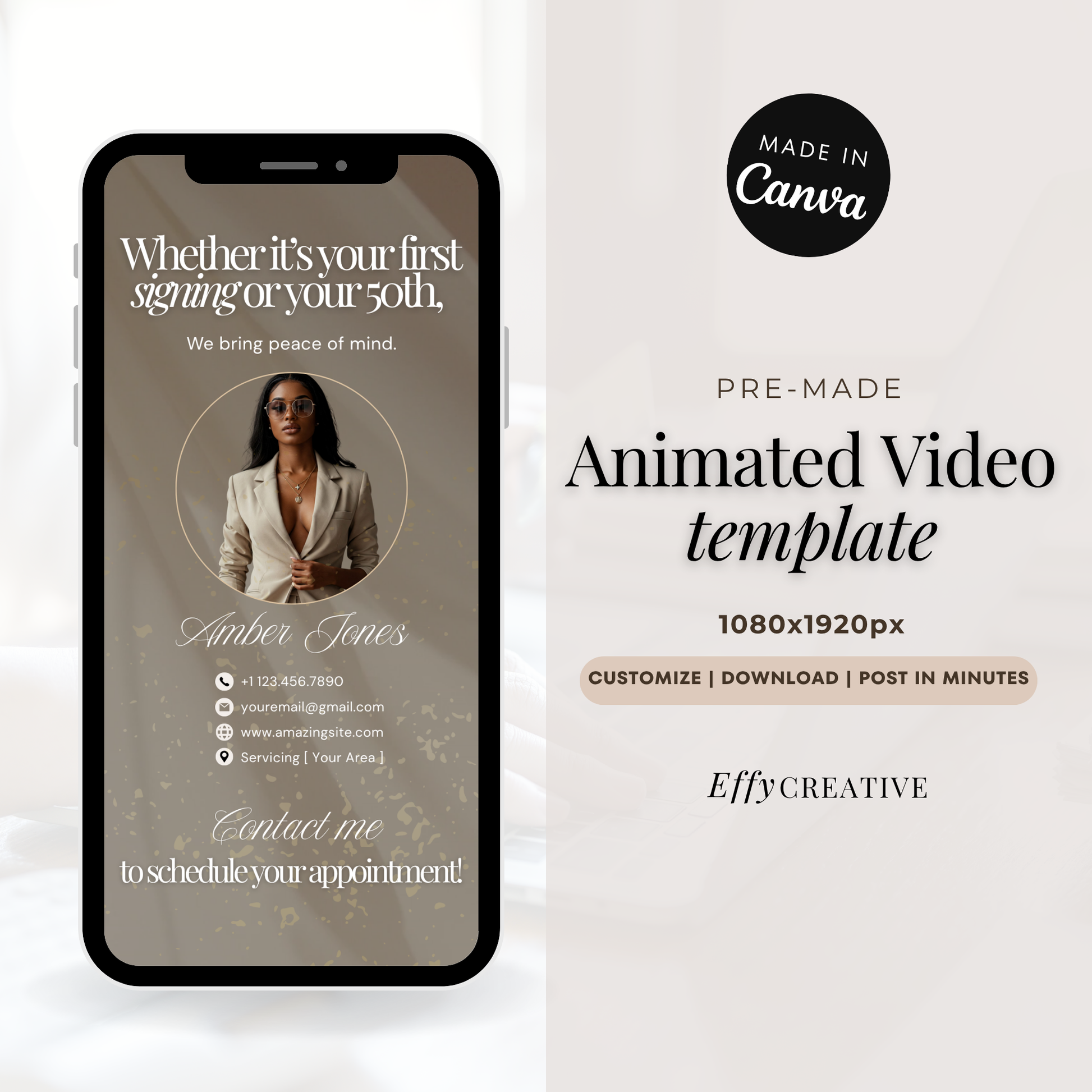 🤍 Level up your notary brand with this scroll-stopping Animated Mobile Flyer! Sized perfectly at 1080x1920, this vertical business card is ideal for texting clients, sharing in DMs, or posting to your social media stories. Fully editable in Canva – no design skills needed!