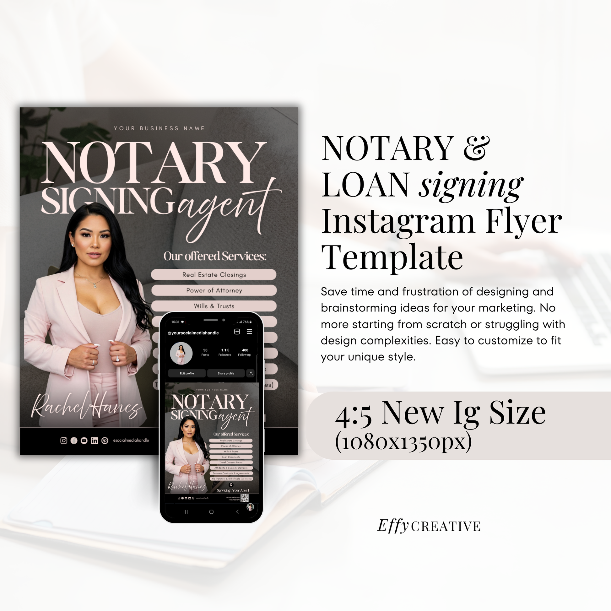 New Modern Notary Digital Marketing Flyer - Social Media Flyer Post - New IG Size