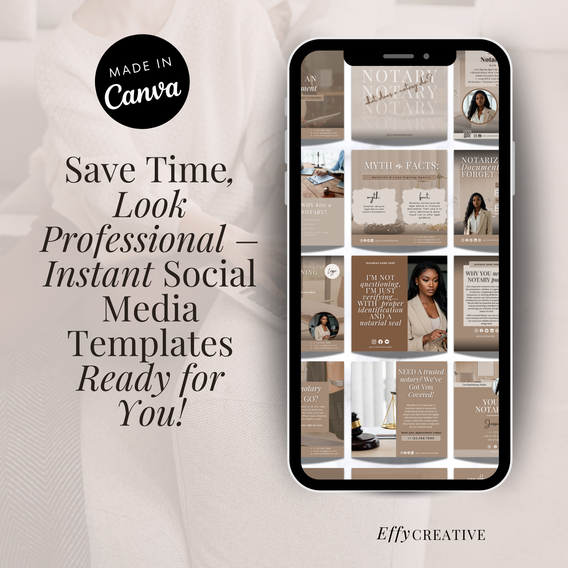 Struggling with social media content? My professionally designed social media kits help notaries, loan signing agents, and small business owners create a polished, branded look without the hassle. Fully customizable on Canva – just edit & post! Perfect for those who love aesthetic, professional designs. Shop now & elevate your brand!