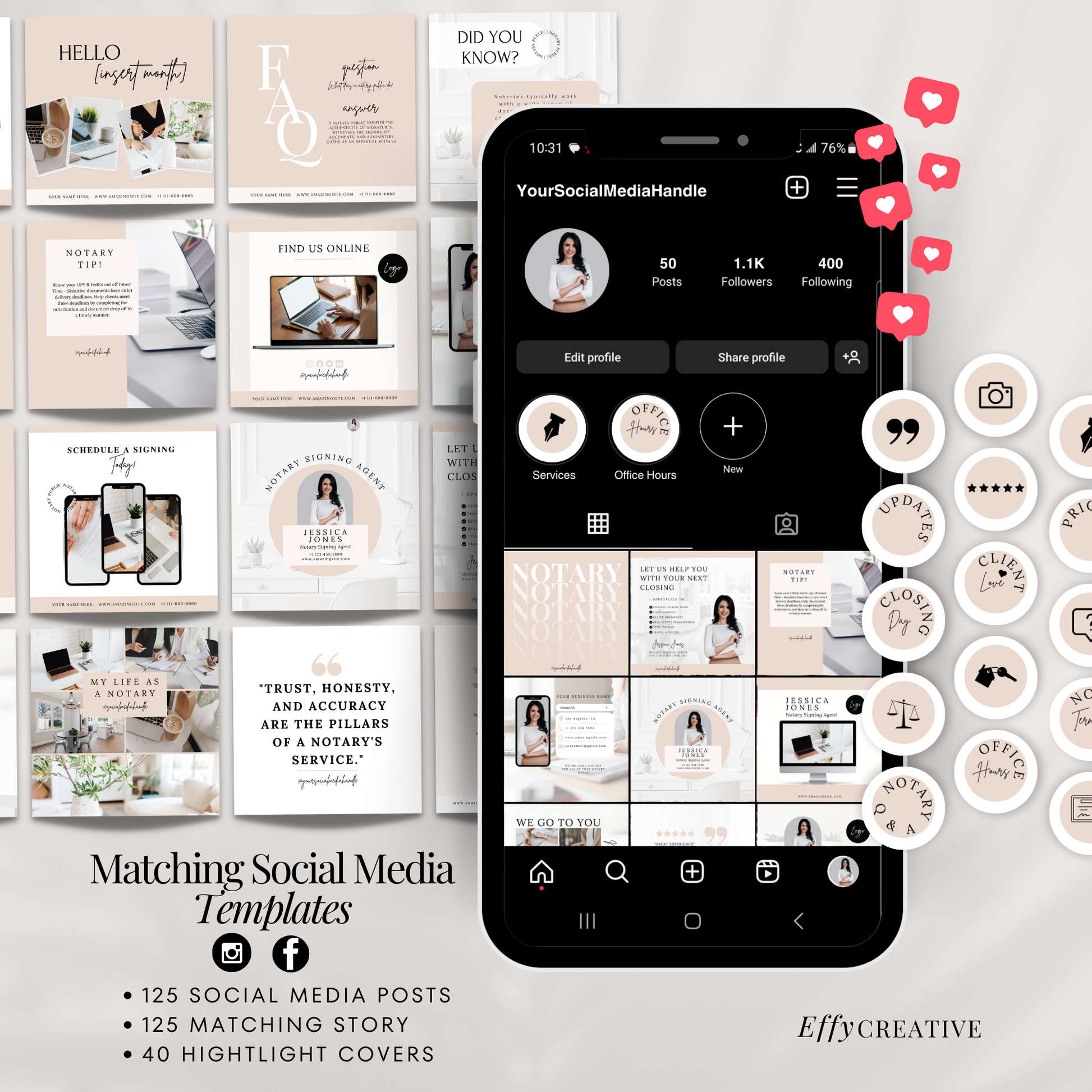 Ultimate Notary Branding Kit – Beige Neutral Aesthetic Templates for Social Media + Marketing