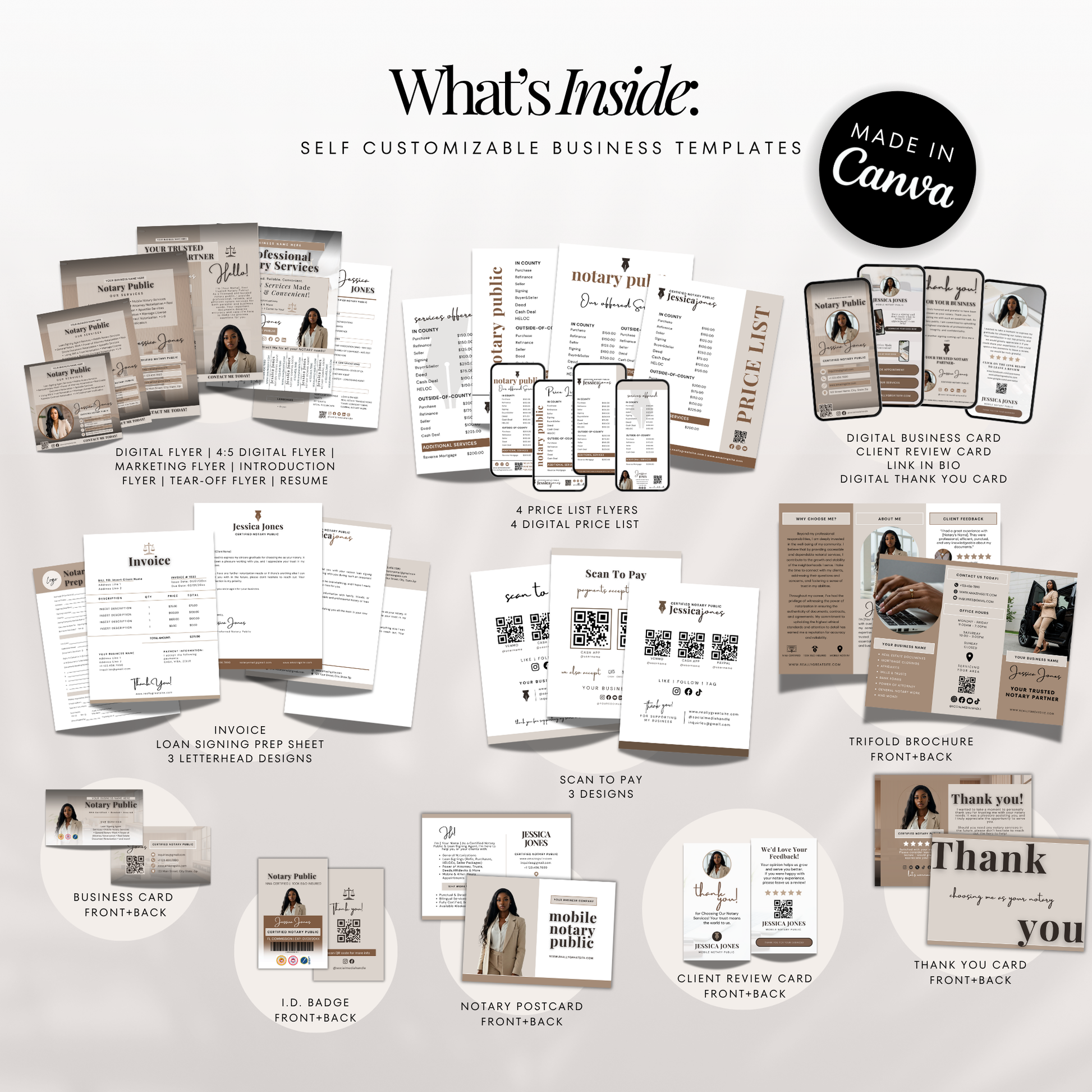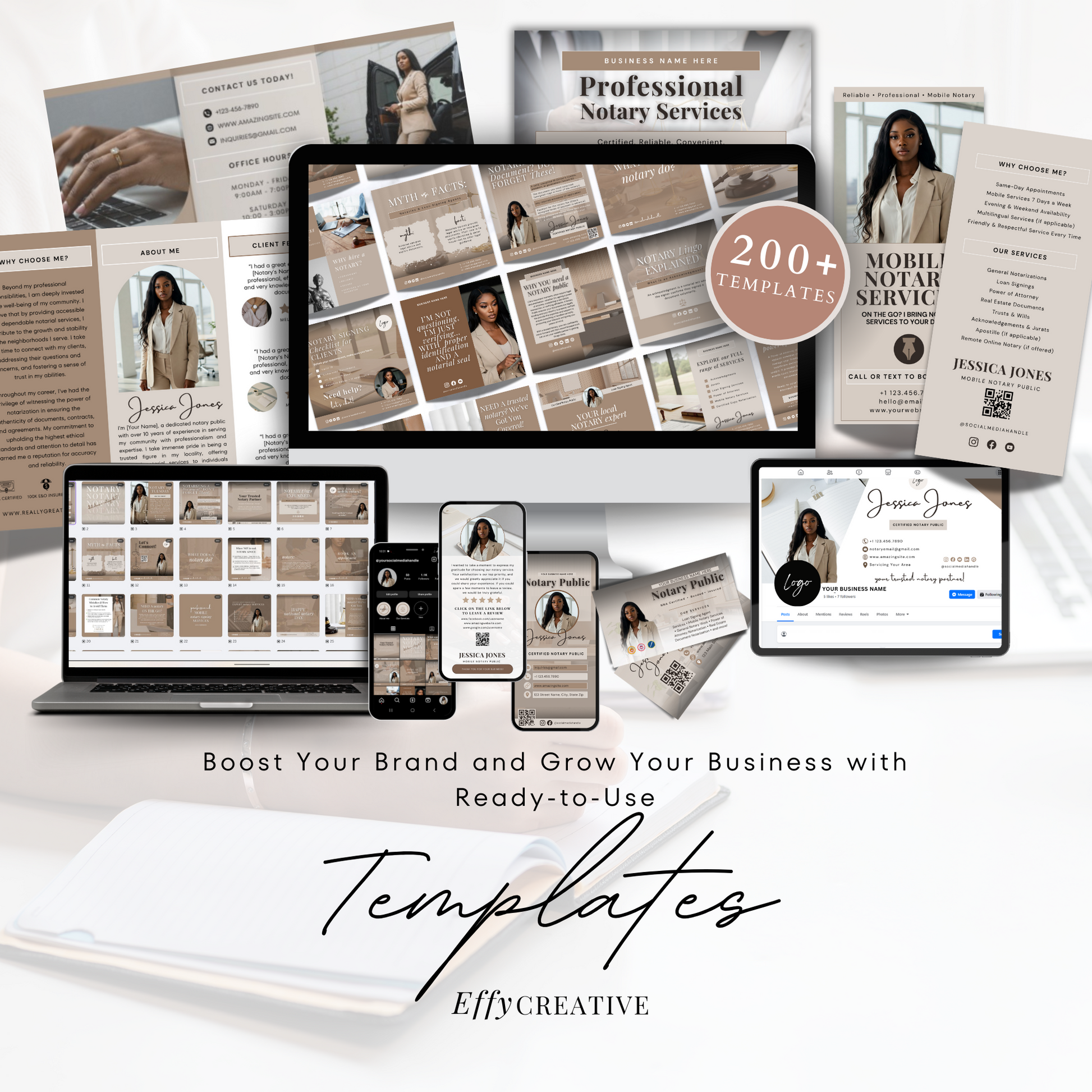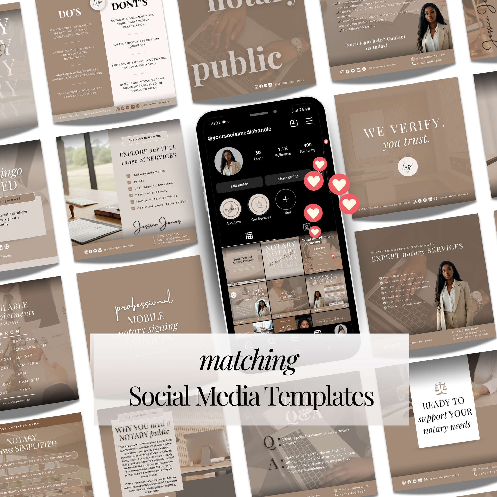 Ultimate Notary Branding Kit – Brown & Beige Aesthetic Templates for Social Media + Marketing