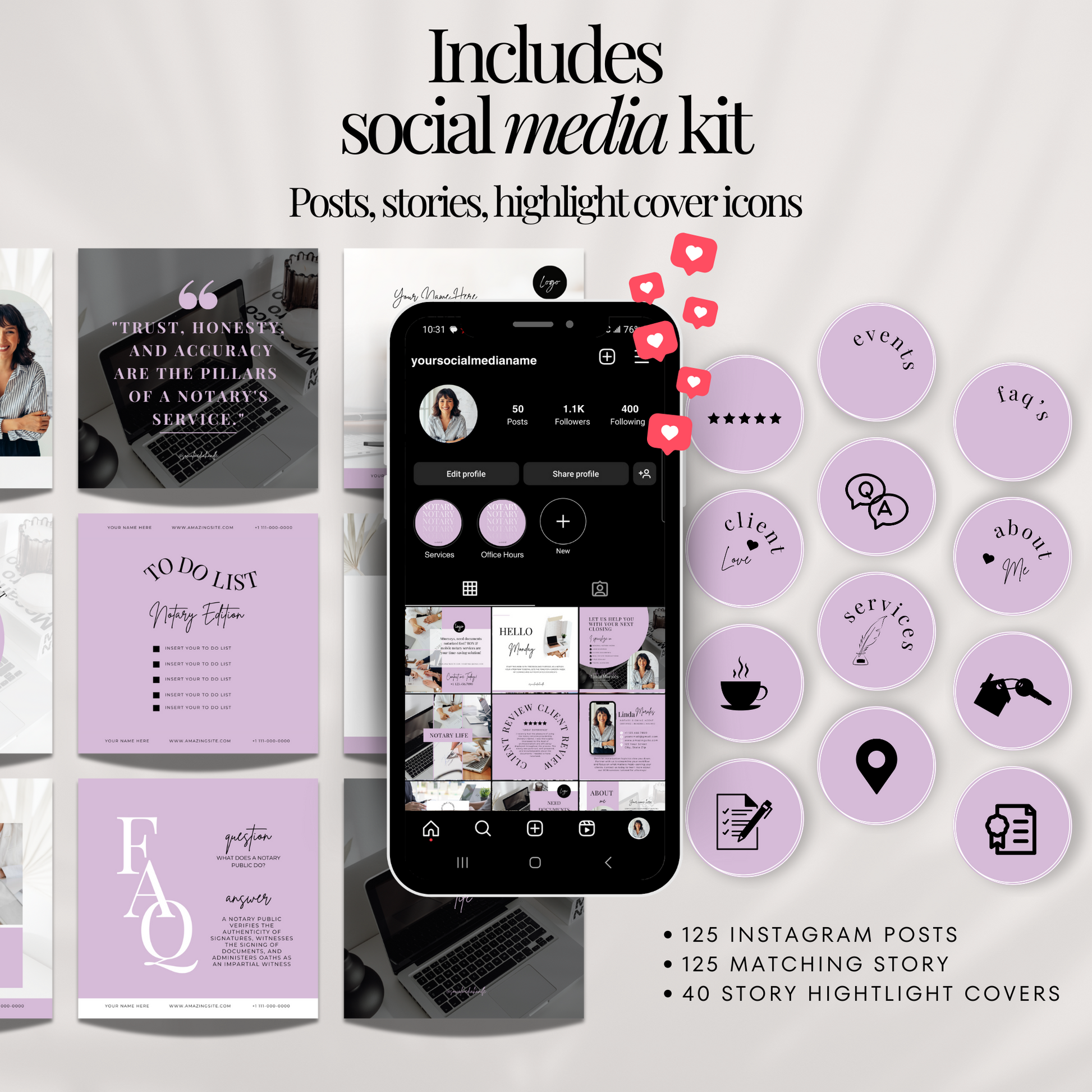 Ultimate Notary Branding Kit – Lilac Aesthetic Templates for Social Media + Marketing