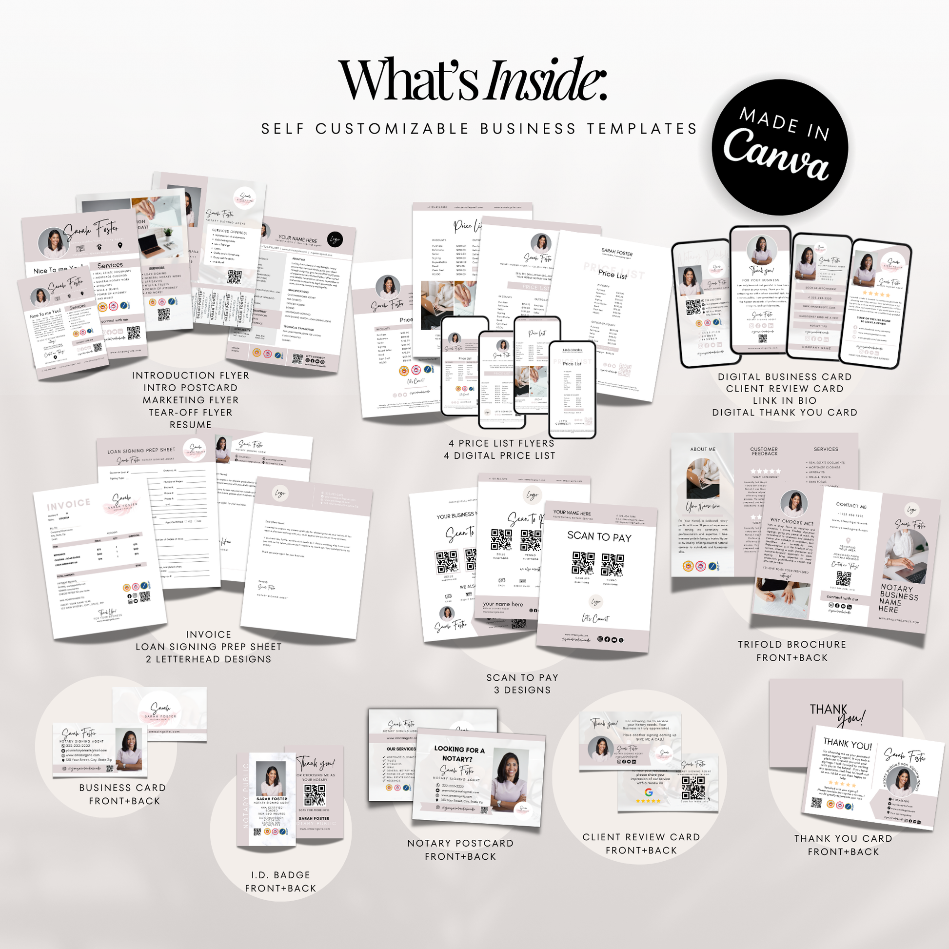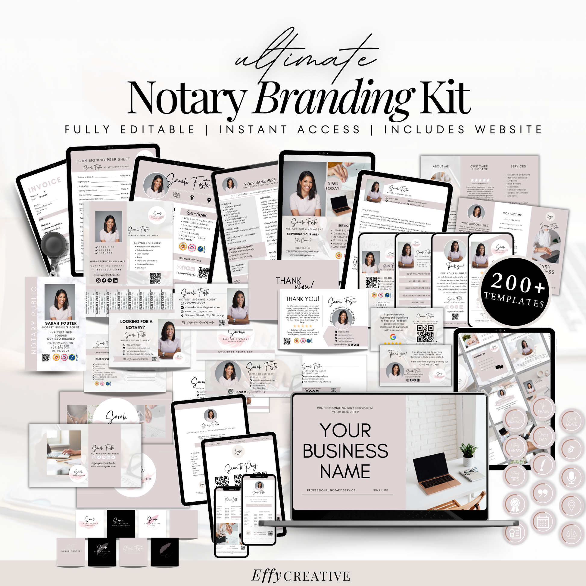 Elevate your notary business with the Notary Ultimate Branding Kit, designed specifically for notaries, mobile notaries, loan signing agents, and business owners. This all-in-one branding kit includes premade templates created in Canva, making it simple for you to customize each design to match your branding and unique style.