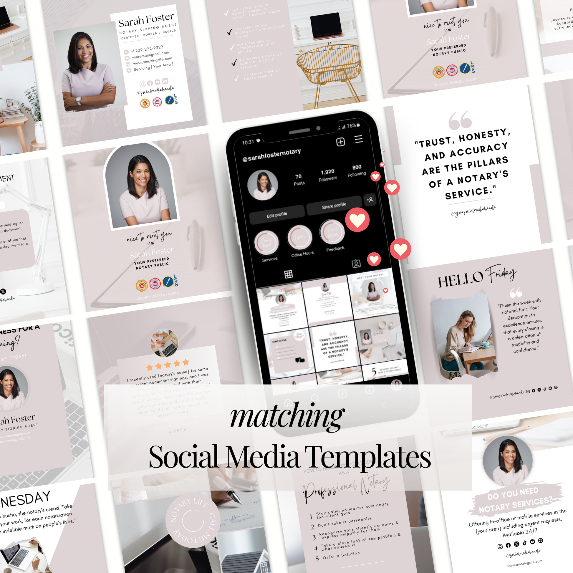 Ultimate Notary Branding Kit – Light Pink Aesthetic Templates for Social Media + Marketing