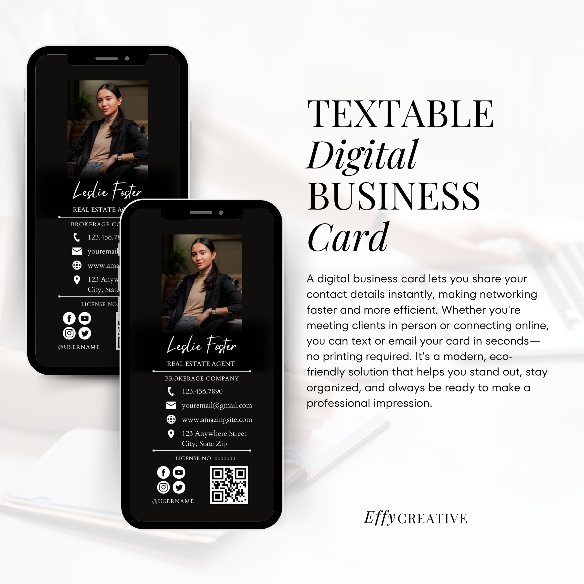 Introducing our Modern & Sleek Real Estate Digital Business Card Template, your key to professional networking in the competitive real estate industry! 🏡💼