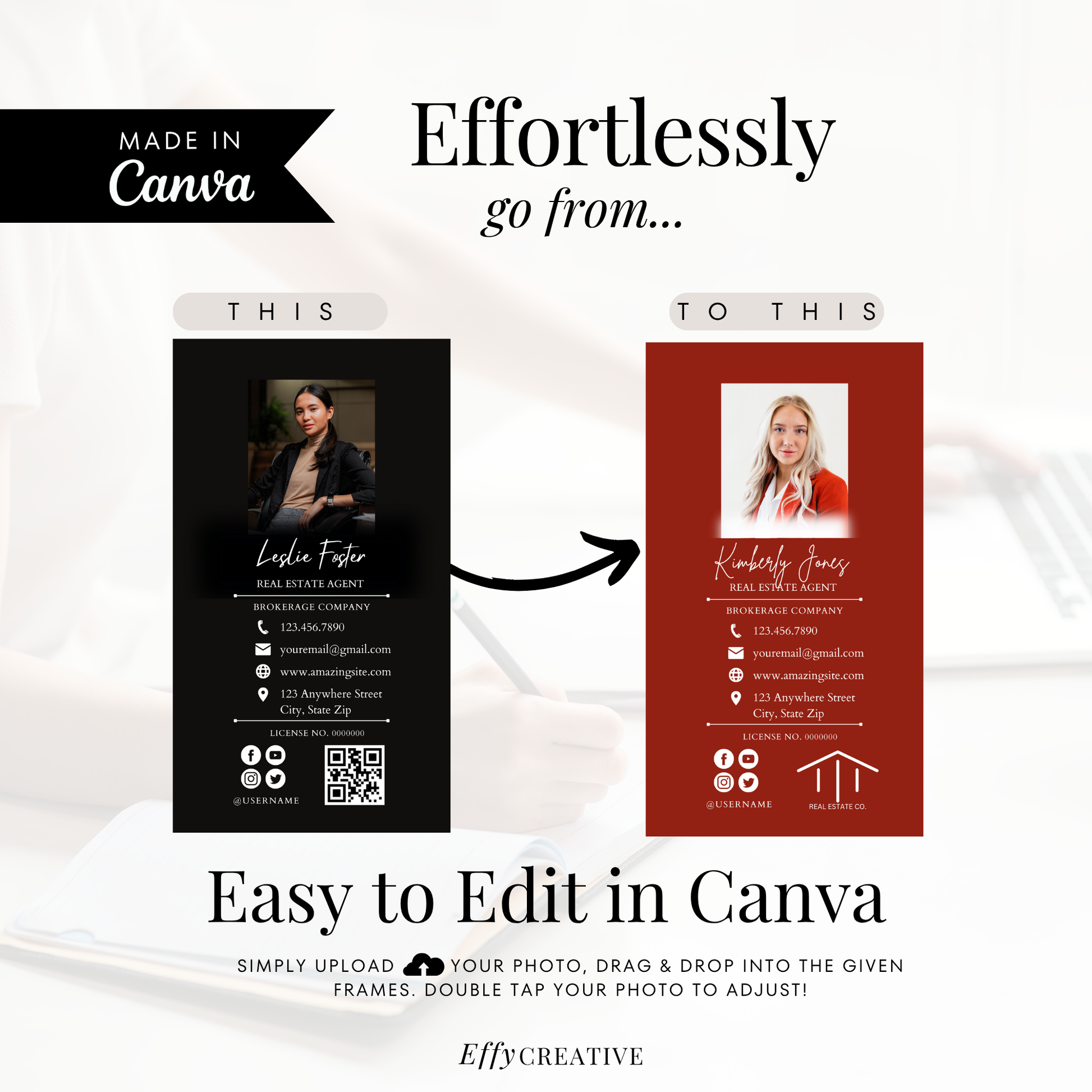 This easy-to-use Canva template allows you to create a sleek and personalized digital business card with just a few clicks. No design skills necessary! With its fully editable features, you can effortlessly customize your contact details, logo, and branding to make a lasting impression on potential clients and collaborators.