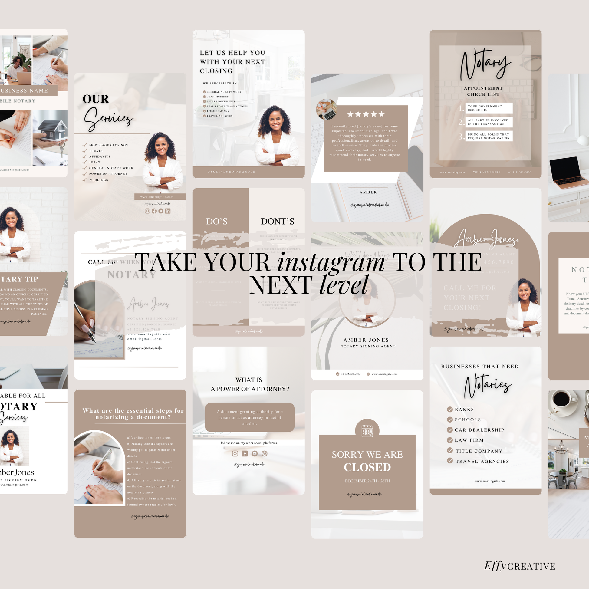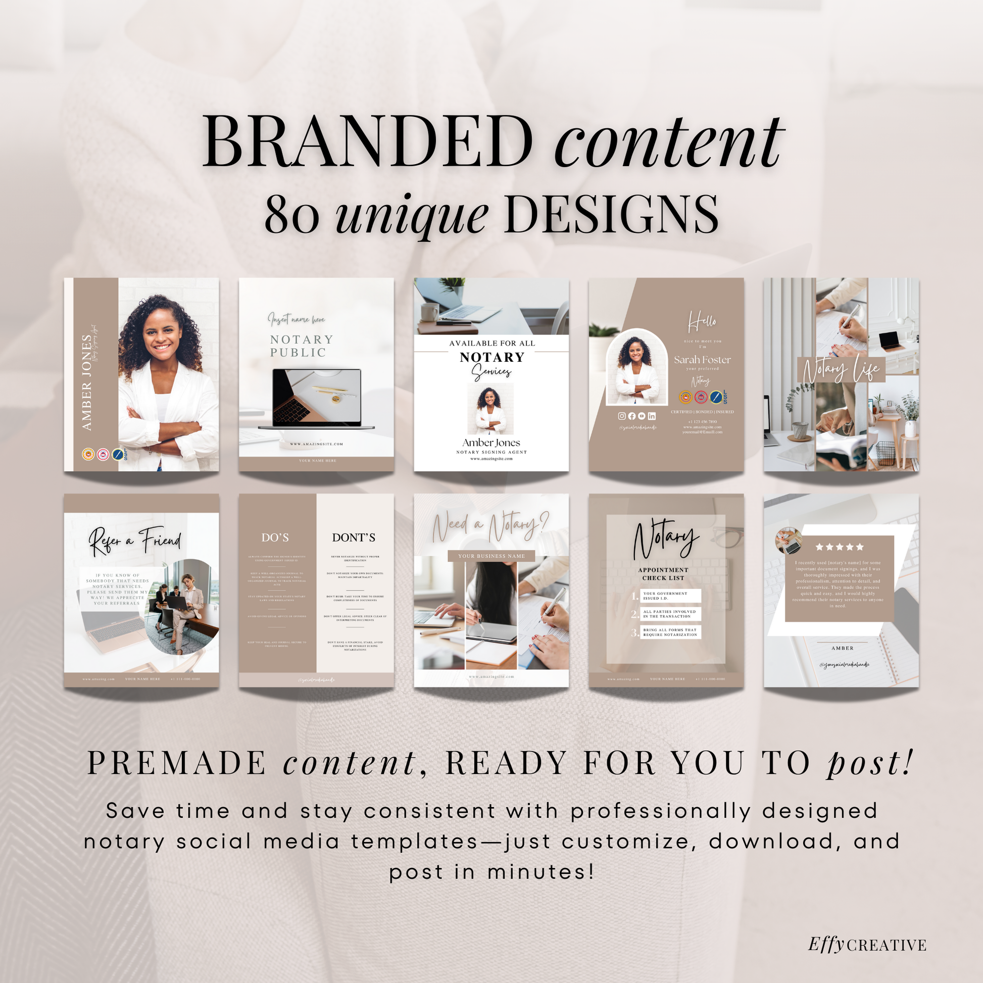 🤍 This Self-customizable Notary Social Media template Bundle is designed for notaries, loan signing agents, and small business owners looking to promote their services with ease and style. Whether you're offering mobile notary services, general notary work, or loan signing services, these customizable posts